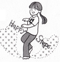 (自由な方向に歩くのは難しい)2人組も上手にパートナーを探し、その後、膝を痛めない屈伸、はずみ、左右のステップ、モニカ風コンビ
