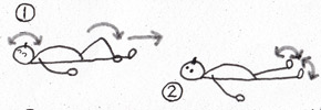お尻上げ下げ 片足づつ伸ばし 目を閉じ頭を左右に転がす(左右で1回×10回)